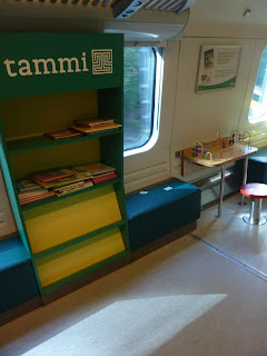 Do Finlandii wybrałyśmy się tanimi liniami, starając się wyszukać jak najlepsze połączenie, więc nasza podróż zaczęła się w Warszawie, w samolot wsiadłyśmy w Gdańsku, wylądowałyśmy w Turku i potem pozostała już tylko podróż pociągiem w górę po mapie. I tu znalazłyśmy coś, co spodobało nam się niesamowicie :) Aż zaczęłyśmy głośno zastanawiać się czy i w Polsce kiedykolwiek pojawią się dwupoziomowe wagony z... placami zabaw dla dzieci w środku :) Już samo zewnętrze zachęcało do zabawy...